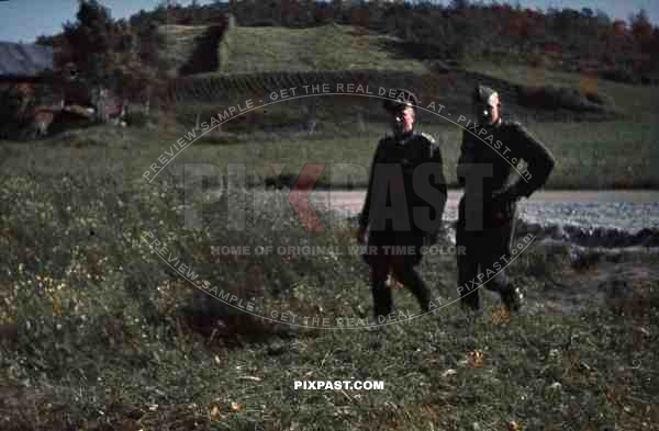 WW2 Color Norway - 2 German officers walking in Norwegian field medals iron cross Village
