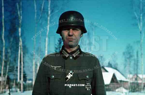 WW2 color Russia 1943 Winter snow camo white helmet jacket officer 207 Infantry Division Major Scheer
