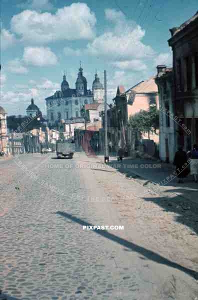 WW2 color Sankt Simeon and Helena church Luftwaffe Luftlotte 2 minsk russia 1941 truck soldiers church