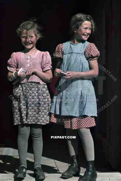 WW2 color Stuttgart Ulm 1939 Germany children costume playing sweetings stockings happy