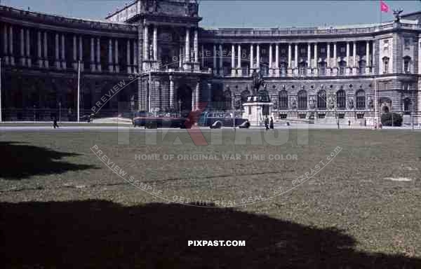 WW2 color Vienna Austria Hofburg Palace troop bus wehrmacht soldiers 1941