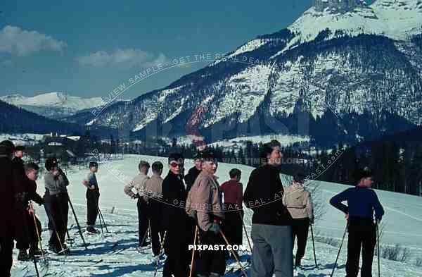 WW2 color Wels Austria winter snow 1939 ski sports children mountains