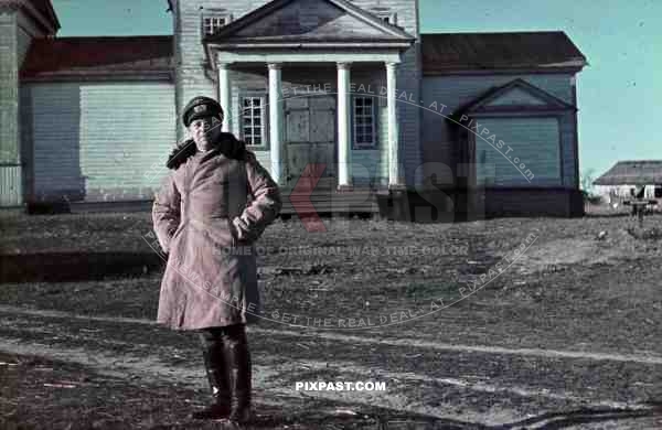 WW2 Color Wolfgang German army cavalry officer in winter jacket boots Ukraine winter 1943