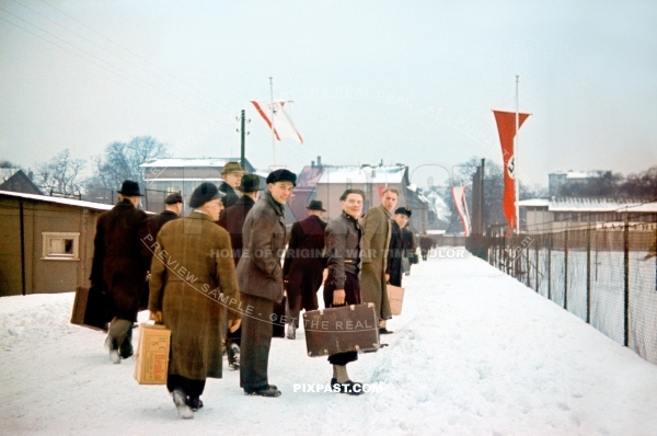 Young German men with travel cases volunteering for military service. Winter Germany 1939. Later 8th Panzer Division soldiers