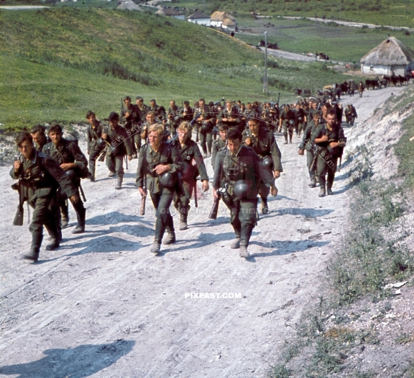 Young German soldiers marching into Russia 1941.